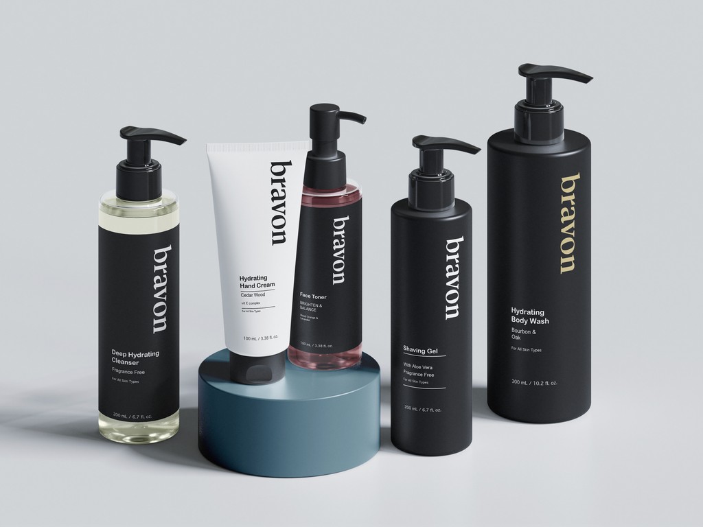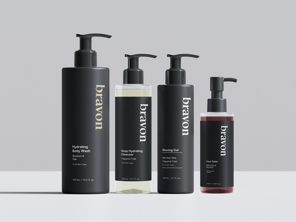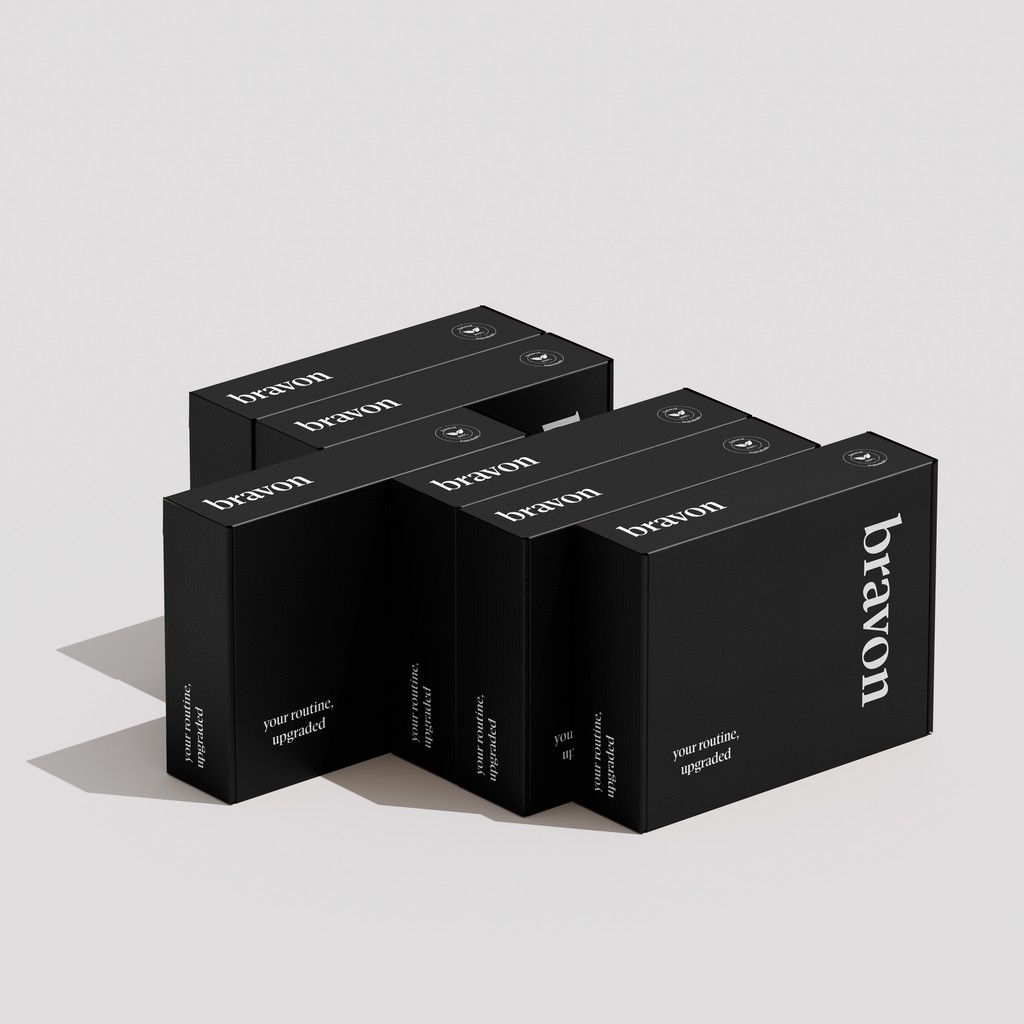 Bravon is a men’s hygiene brand built around a clean, minimalist aesthetic. Its black-and-white palette reinforces the brand’s confident, masculine identity while keeping the visuals timeless. For the packaging, I emphasized a dark yet sophisticated look that aligns with Bravon’s refined, modern character.